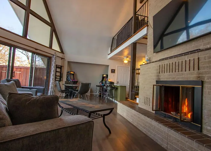 **Welcome to the Lakehouse Retreat With Hot Tub, an exquisite getaway nestled alongside serene waters, just 85 km from Fort Worth Alliance Airport. This enchanting abode seamlessly merges rustic charm with modern comforts, offering a peaceful escape from the bustle of city life. Surrounded by nature, the location is perfect for those seeking tranquility and adventure alike.**